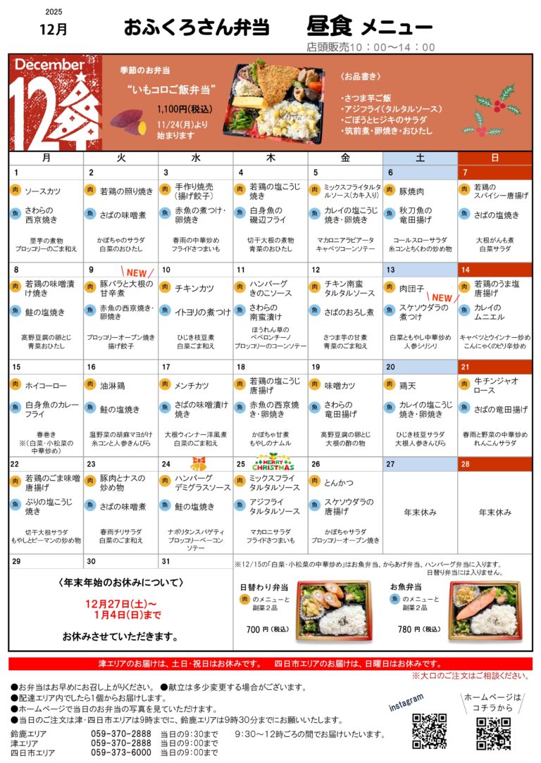 12月メニュー表