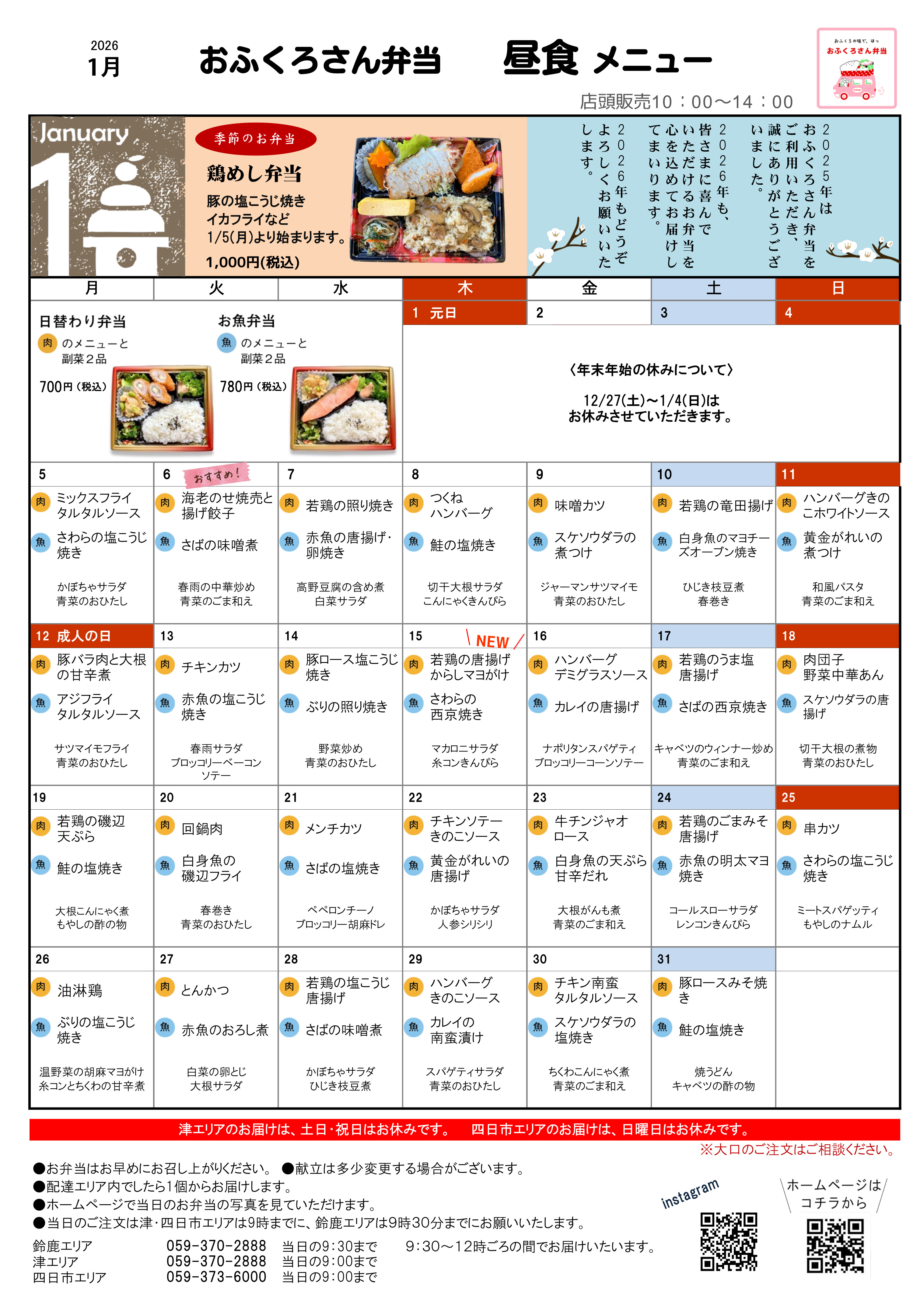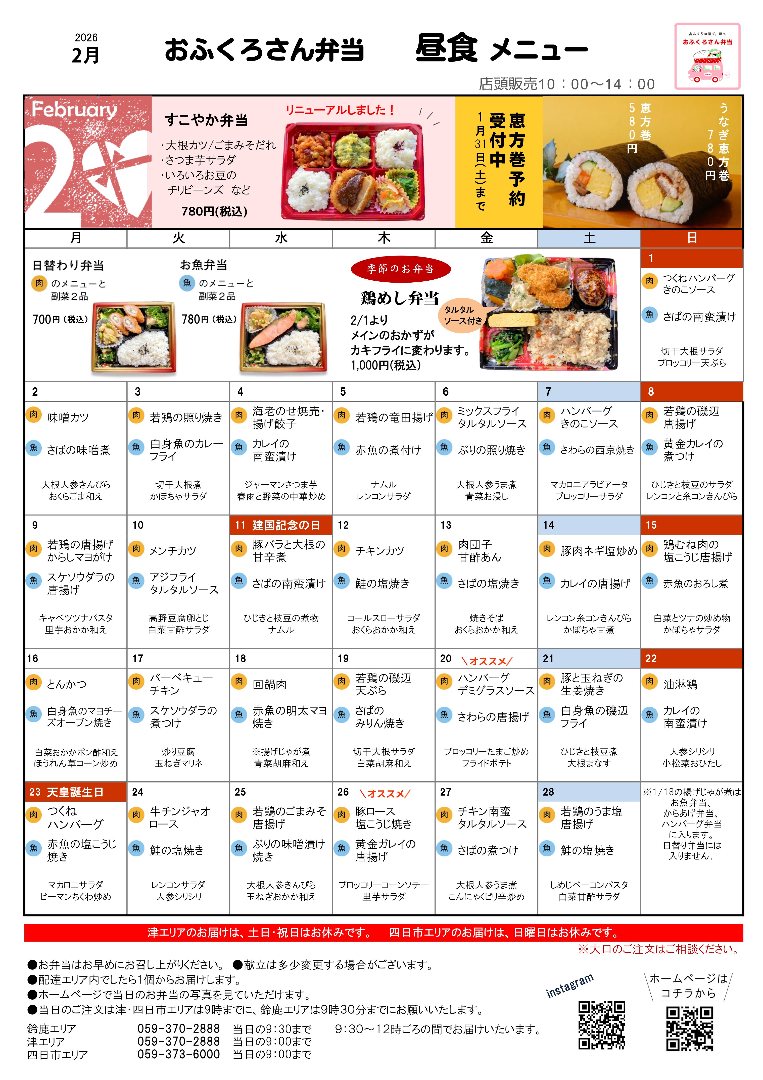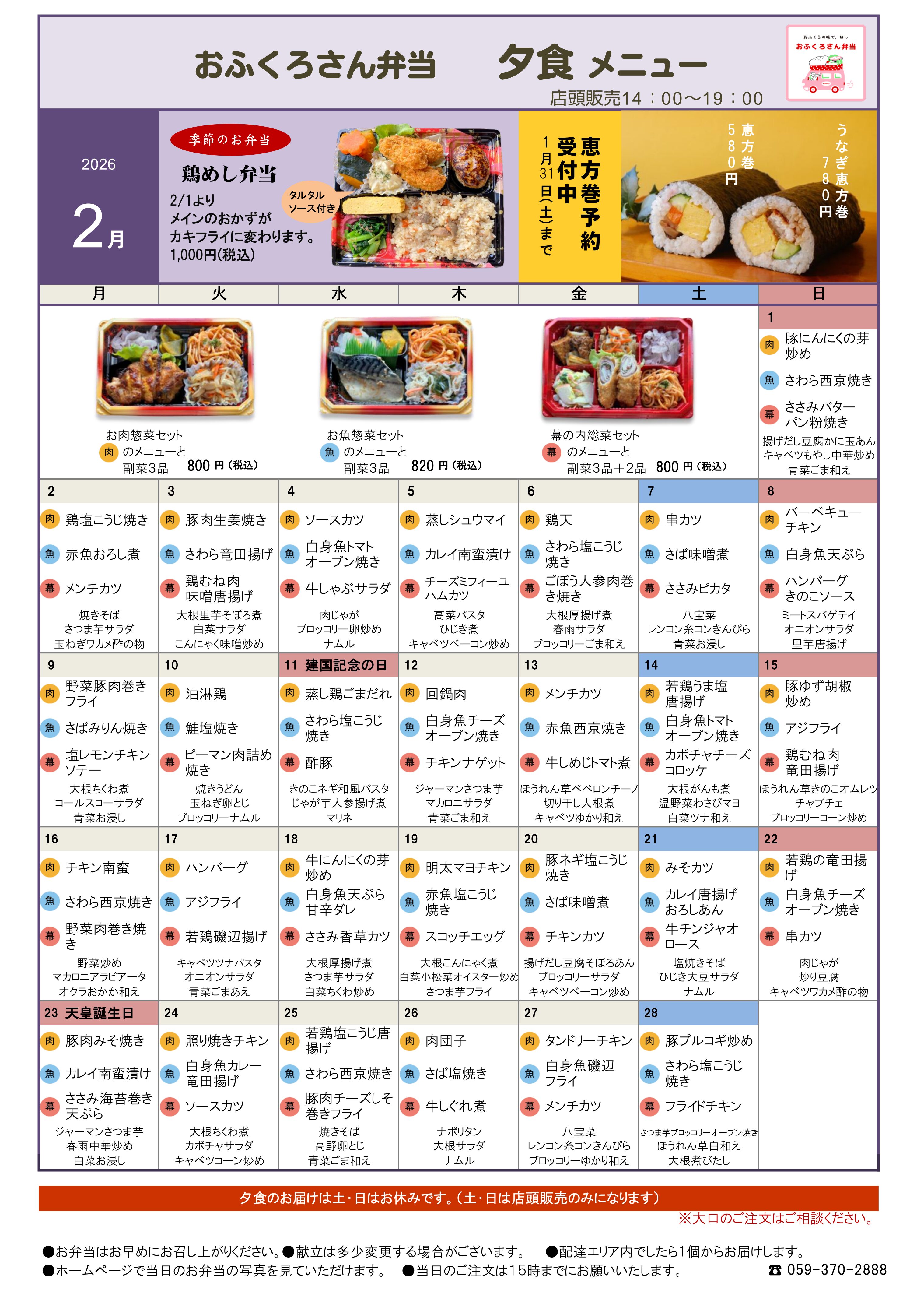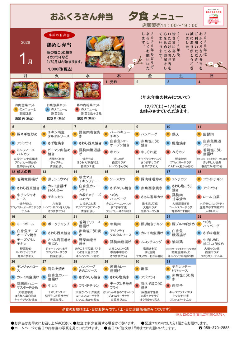 1月・2月メニュー表